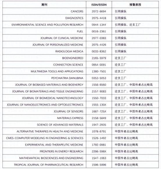 2024年2月19日,中国科学院文献情报中心期刊分区表团队发布2024年度《国际期刊预警名单》,其中包括24本期刊。